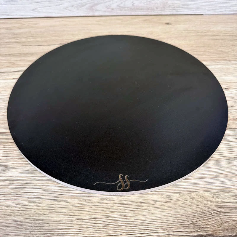 Hrubý 8 mm podnos kruh s gravírom - Čierny