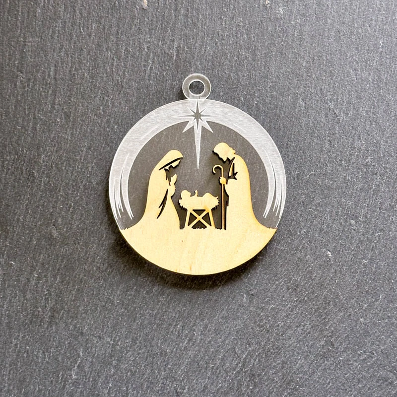 Vianočná ozdoba vyrobená z Bio plast materiálu, dreva a akrylu